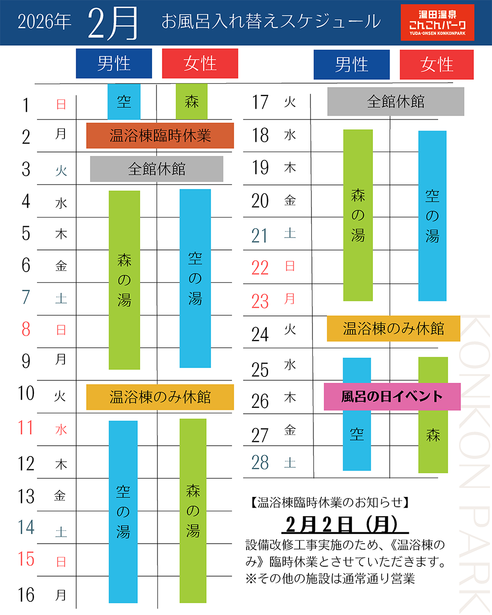 2月のお風呂入れ替えスケジュールについて